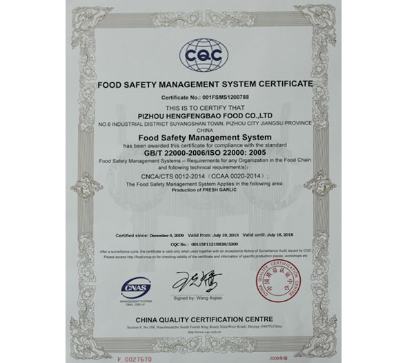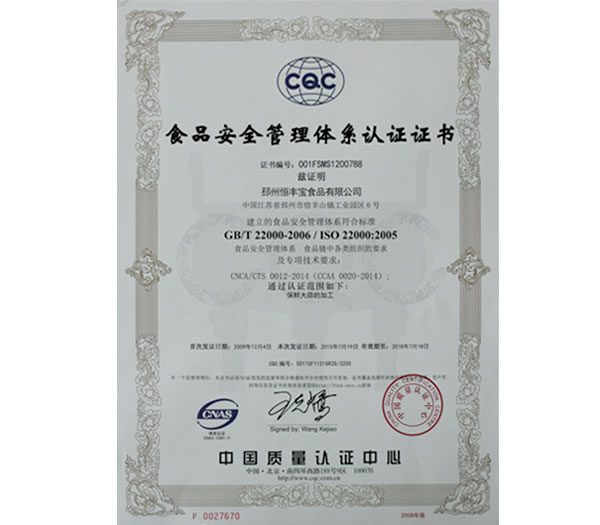 食品安全管理體系認(rèn)證證...