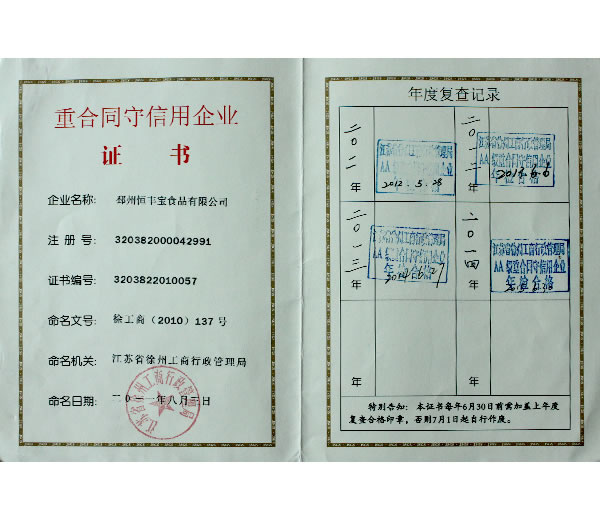 重合同守信用企業(yè)證書